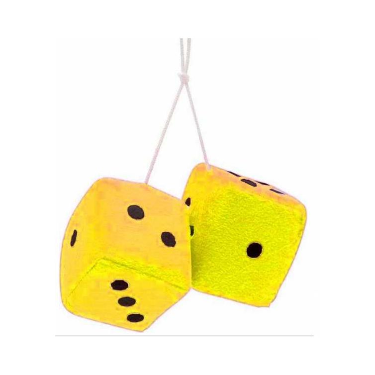 AutoLoc Yellow Fuzzy Dice with Black Dots.