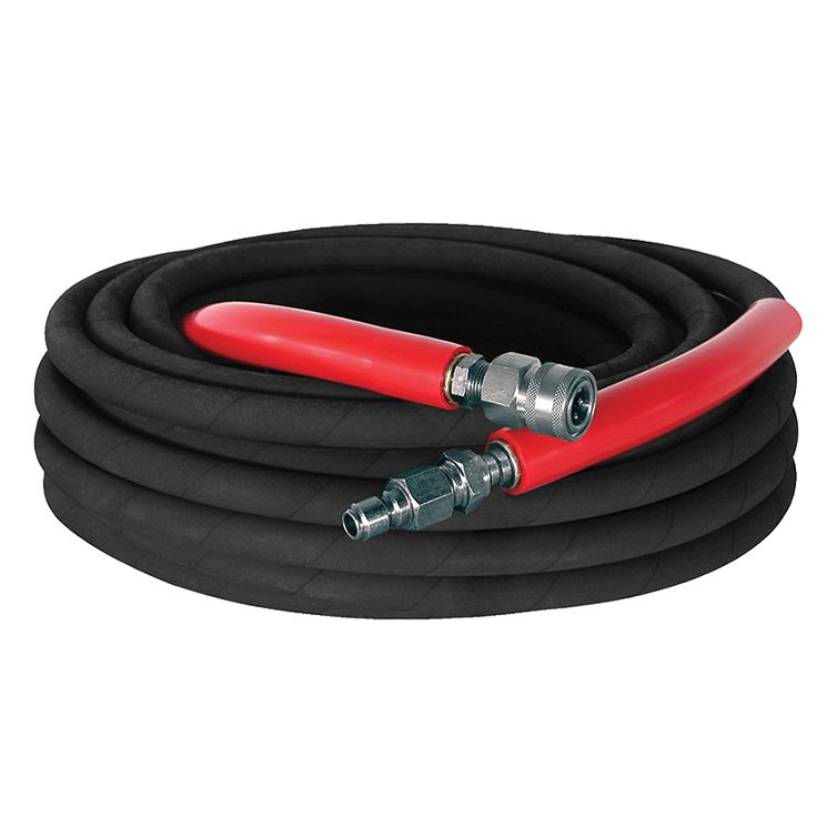 This 50' high pressure hose is ideal for hot water cleaning, able to handle water temperatures of up to 200° F. Quick 3/8" couplers and plugs make attaching this hose to your pressure washer easy.