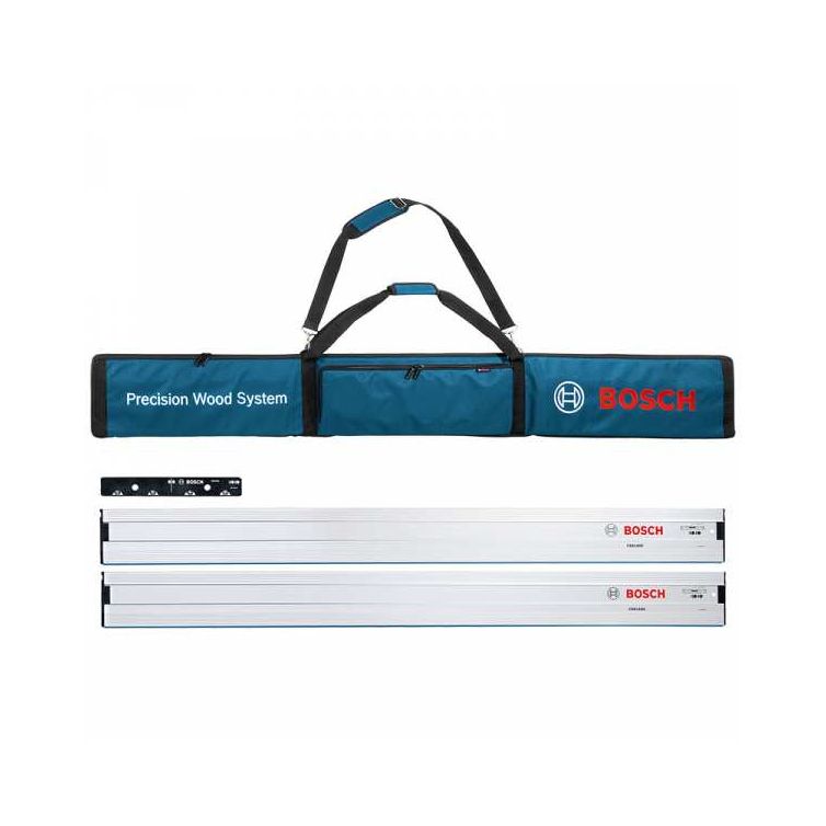 - Convenient 63" Tracks and Connector Kit – collected to get started with the Bosch Track Saw (sold separately), featuring two FSN1600 63" (1600mm) tracks, a FSNVEL connector, and a track bag