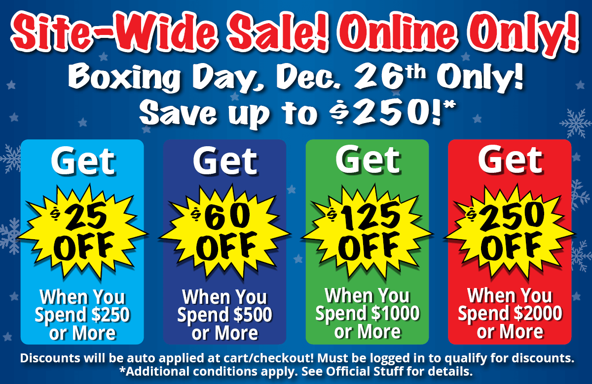 *Boxing Week products are all limited quantities and no backorders or rainchecks will be given. “Save up to” amounts are based on the Boxing Week in stock product on December 24th and may vary. Images are for representation purposes only. Prices are valid from December 24 until December 31, 2025 end of day at midnight.