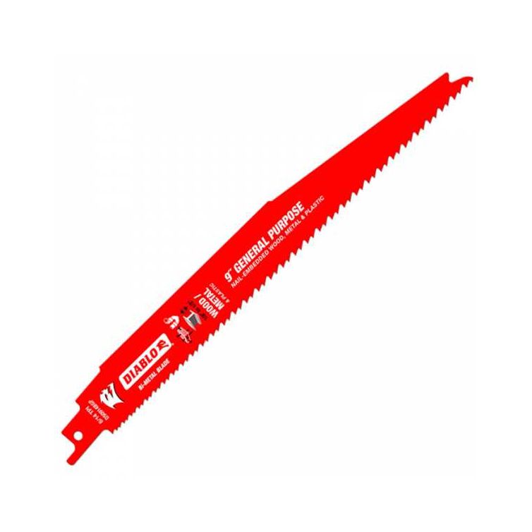 Diablo's reciprocating saw blades are specifically designed for maximum performance in general purpose (nail-embedded wood and metal) applications. These high performance blades feature bi-metal technology that delivers up to five times longer life of standard blades on the market. Diablo's’s patented variable tooth technology provides faster cuts with less vibration.