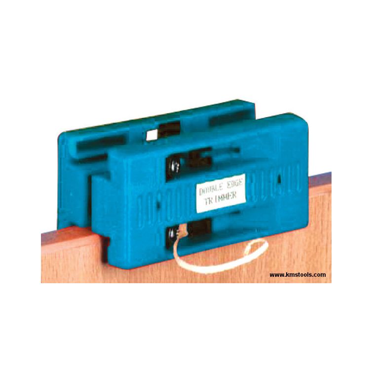 This is a practical tool that will trim two edges of wood at the same time. It has a double spring loaded handle and sharp steel knives that will clamp onto the material to be trimmed. Simply slide it along the edge, and the excess edge is trimmed effortlessly. The tool requires no adjustments, and the blades may be re-sharpened for longer life.