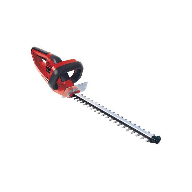 The GC-EH 4550 electric hedge trimmer is a powerful and reliable tool which provides very good service for trimming hedges, shrubs and bushes. Its counter-rotating, double-bladed safety cutters of laser-cut and diamond cutted steel achieve good cutting results. For efficient power transmission there is a robust metal gearing with a long service life. An additional handle and a low weight make for effortless operation. The two-hand safety switch and the large hand guard of the GC-EH 4550 ensure a high safety during working. The cutters are protected by an aluminium cover. Good ergonomics for user-friendly operation are provided by an additional handle and the softgrip on the main handle. A stress-relief clip protects the power cable from wear. This electric hedge trimmer comes with a sturdy cutter guard for safe transportation.