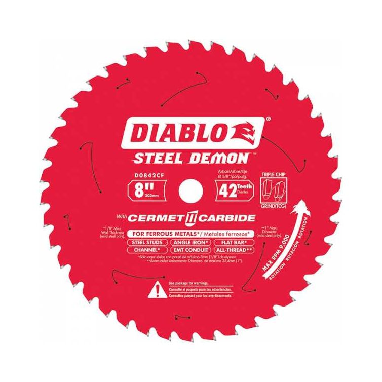 Diablo’s Steel Demon™ Cermet II saw blades are redefining metal cutting, and the jobsite, by introducing exclusive innovation for cutting metals and stainless steels with a cordless or corded circular saw. The specially formulated Cermet II teeth provide high heat tolerance and increased hardness for superior wear and life delivering up to 25X longer life, 50X cooler cuts and 10X faster cuts when compared to standard grinding discs. Featuring a special Triple Chip Grind and Perma-SHIELD® coating, these blades slice through the toughest of metals to produce precise, burr-free cuts with less sparks. A controlled cutting action produces larger chip sizes that generates less dust and airborne contaminates. The ability to cut through both metals and stainless steels eliminates the need for individually dedicated saw blades, offering a one-blade solution for the ultimate metal cutting performance and an unmatched value.
