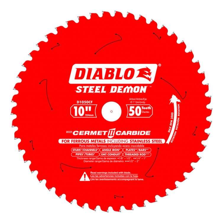 Diablo’s Steel Demon™ Cermet II saw blades are redefining metal cutting, and the jobsite, by introducing exclusive innovation for cutting metals and stainless steels with a cordless or corded circular saw. The specially formulated Cermet II teeth provide high heat tolerance and increased hardness for superior wear and life delivering up to 25X longer life, 50X cooler cuts and 10X faster cuts when compared to standard grinding discs. Featuring a special Triple Chip Grind and Perma-SHIELD® coating, these blades slice through the toughest of metals to produce precise, burr-free cuts with less sparks. A controlled cutting action produces larger chip sizes that generates less dust and airborne contaminates. The ability to cut through both metals and stainless steels eliminates the need for individually dedicated saw blades, offering a one-blade solution for the ultimate metal cutting performance and an unmatched value.