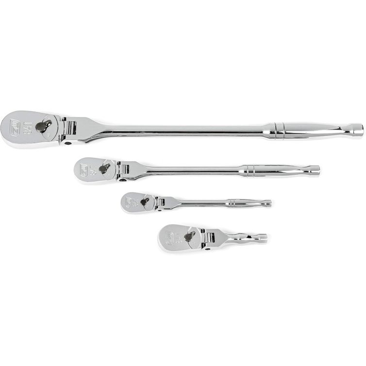 GearWrench 4 Piece 1/4", 3/8", 3/8" Stubby & 1/2" Drive 84-Tooth Flex Head Teardrop Ratchet Set