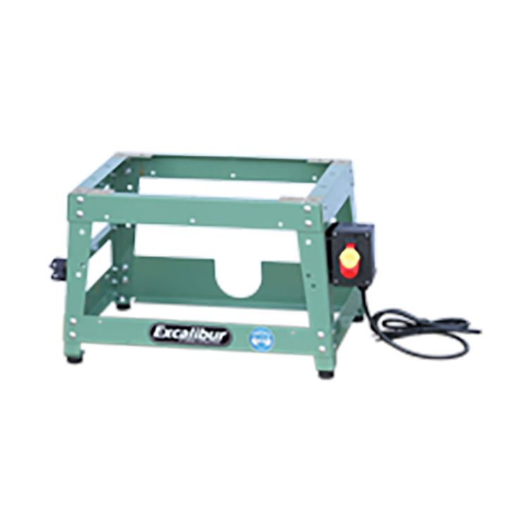 Sturdy steel stand includes easy access on/off safety switch with removable lock-out key and adjustable levelling feet. Compatible with Excalibur cast iron, phenolic and mdf router tables.