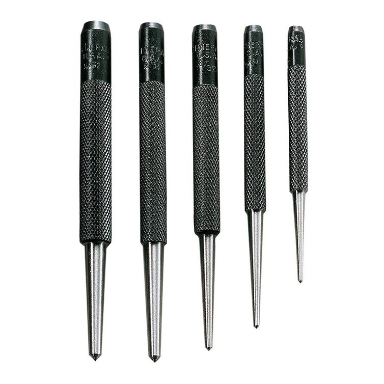 - Set includes five center punches, from 1/16" to 5/32", and vinyl case