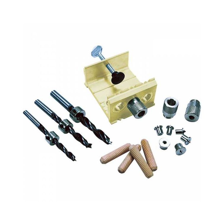 - 1/4", 5/16" & 3/8" brad point drill bits w/drill stops, dowel center pins & wood dowels