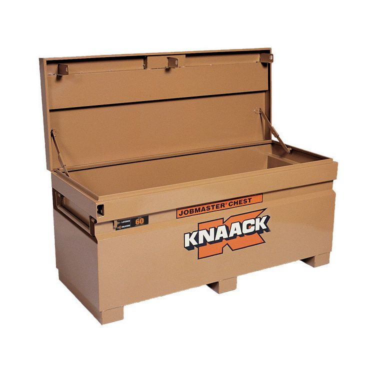 The Model 60 JOBMASTER chest measures 60" long and has a capacity of 20.25 cu ft. It is versatile, portable and can hold anything from hand and power tools to shovels and features a full lenth piano hinge, stacked and welded to resist break-in attempts. The size is ideal for a personal box on a jobsite or added security inside a trailer.
