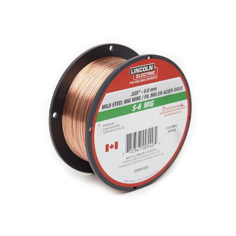 This Lincoln Electric 0.025-in S-6 MIG welding wire comes in a 2 lb spool.