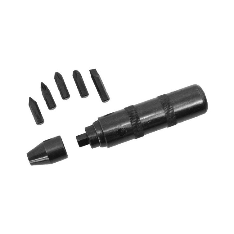 This impact screw driver will help in loosening rotor retaining screws on disc brakes, or help turn other tight screws that you don’t want to strip. Just twist the screwdriver in the direction you want to turn, place it on the screw, hit the screwdriver with a hammer. The impact drives the bit tightly into the screw and twists it until it is loose enough to take out.