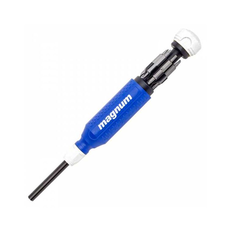 This Magnum Standard Screwdriver is the original and still our most popular bit load driver. Filled with 7 double end and professional quality bits, this driver provides the 14 most popular tips for driving screws. The shaft opening also serves as a 1/4 in. hex driver. One Magnum screwdriver eliminates the need of having to store or carry around 15 different screwdrivers.