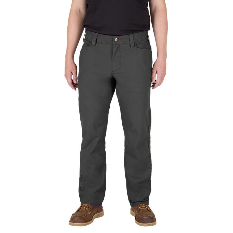 Milwaukee's Work Pants are built from a tear-and-abrasion-resistant fabric that provides broken-in comfort right off the shelf. With built-in stretch and our custom knee-to-knee crotch gusset, this work pant allows you to work hard without stiffness. The Milwaukee Work Pants are engineered to be your everyday go-to with trade-focused details: triple-stitched seams, dedicated tool clip-on zones, seven durable and easy-to-access pockets, wide belt loops, and a reinforced kick plate.