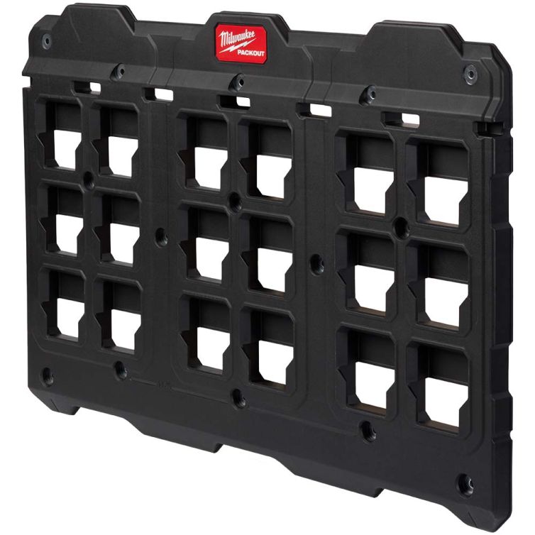 The Milwaukee PACKOUT Large Wall Plate features Quick-Alignment Tabs to make installing rows and columns of multiple wall plates easier. This Large Wall Plate is constructed with Metal Reinforced Mounting Points and impact-resistant polymers that ensure secure mounting in shop, transit, and site environments. The Large Wall Plate has a 50lbs weight capacity when mounted in the shop, and a 25lbs when mounted in vehicles. As part of the Milwaukee PACKOUT Modular Storage System, the PACKOUT Large Wall Plate allows you to customize your storage system and keep your storage solutions organized. Milwaukee PACKOUT is the industry's most versatile and durable modular storage system.