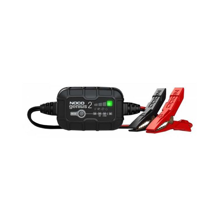 Introducing the all-new GENIUS2, one of NOCO's most powerful, highest-performing, energy-efficient, and compact chargers yet. The GENIUS2 is a 6 volt and 12 volt battery charger, battery maintainer, and battery desulfator rated at 2 amps for lead-acid automotive, marine, and deep-cycle batteries, including flooded, gel, AGM, and maintenance-free, plus lithium-ion batteries.