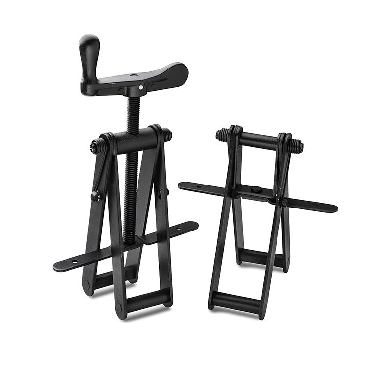Adjustable length clamp provides pressure from all four sides, so it's ideal for big projects such as gluing table tops and shelving. To make wood pieces, drill a series of 5/8" holes spaced 2" apart down the centre line of the board face of a 2x4 piece of lumber. Then rip the board lengthwise through the centres of the holes, creating two pieces approximately 1-1/2" x 1-11/16". Rotate the notched boards so the notches are away from each other.