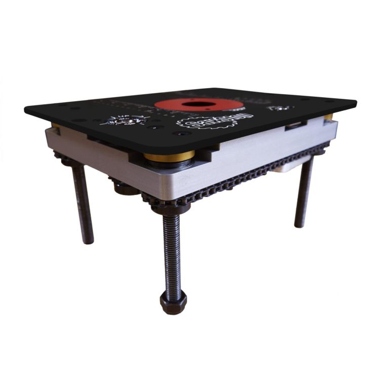 The SawStop Router Lift delivers unmatched precision and durability with its chain-synchronized four-post lifting system. Designed for above-table micro-adjustments and secure locking, it includes adaptive collars to fit a range of router sizes. The 9.25″ x 11.75″ aluminum top plate ensures a perfect fit in all SawStop Router Tables.