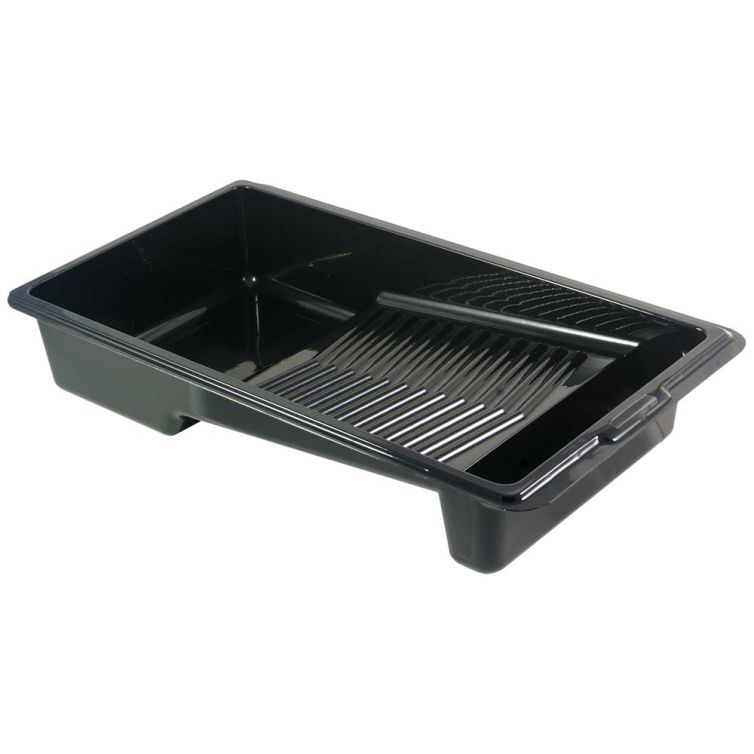 Vacuumed-formed PET. Deep-well design to hold more paint and prevent spills. Anti-skid grid for even paint loading. Contains a high percentage of recycled plastic