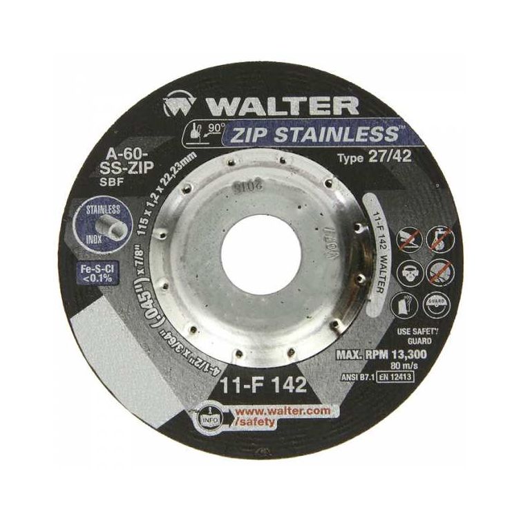 Walter Zip Stainless 4-1/2" Cut-Off Wheel - Depressed Centre
