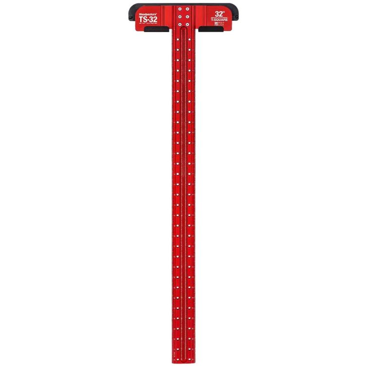 Striking lines parallel with the edge of your stock couldn't be easier, once you have a Woodpeckers Precision T-Square in your shop. The beam has a lip that rests on the top surface of your stock, preventing the tool from rolling like many T-squares. Precision machined scribing guides are spaced every sixteeth-inch down the length of the blade. Just drop in the point of a mechanical pencil and scribe a perfectly parallel line by holding the pencil in one hand and sliding the T-square with the other. In addition to the scribing guides, there are 1/4" diameter holes on 1" centers, ideal for laying out shelf pins.Â