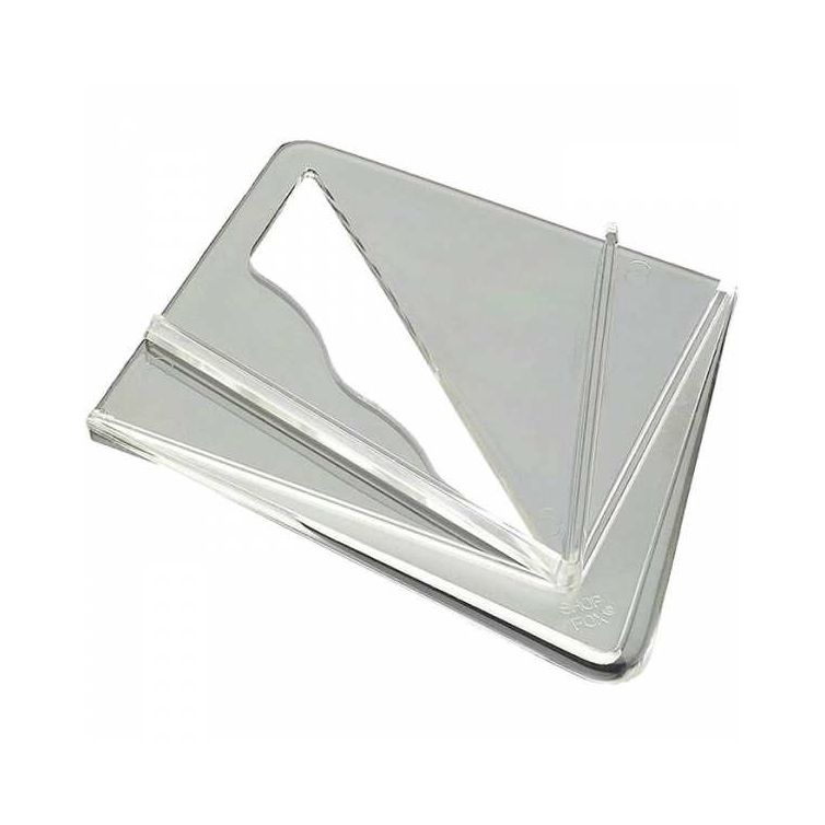 Find the centre of round or square stock for lathe turning with this handy centre finder. One side locates a diagonal line on square stock up to 8" x 8" and the other side locates a diagonal line on round stock up to 4-1/2" in diameter. Marking two opposite diagonal lines determines the center point